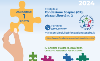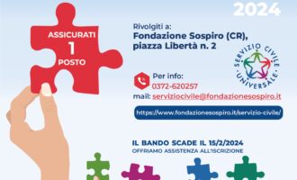Gentilissimo/a Candidato/a, la selezione per il Bando di Servizio Civile Universale si terrà il 26/03/2024 presso FONDAZIONE SOSPIRO in Sospiro...