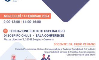 MERCOLEDI’ 14 FEBBRAIO 2024 ORE 9,00 –13,00 – 14,00 - 16,00 FONDAZIONE ISTITUTO OSPEDALIERO DI SOSPIRO...